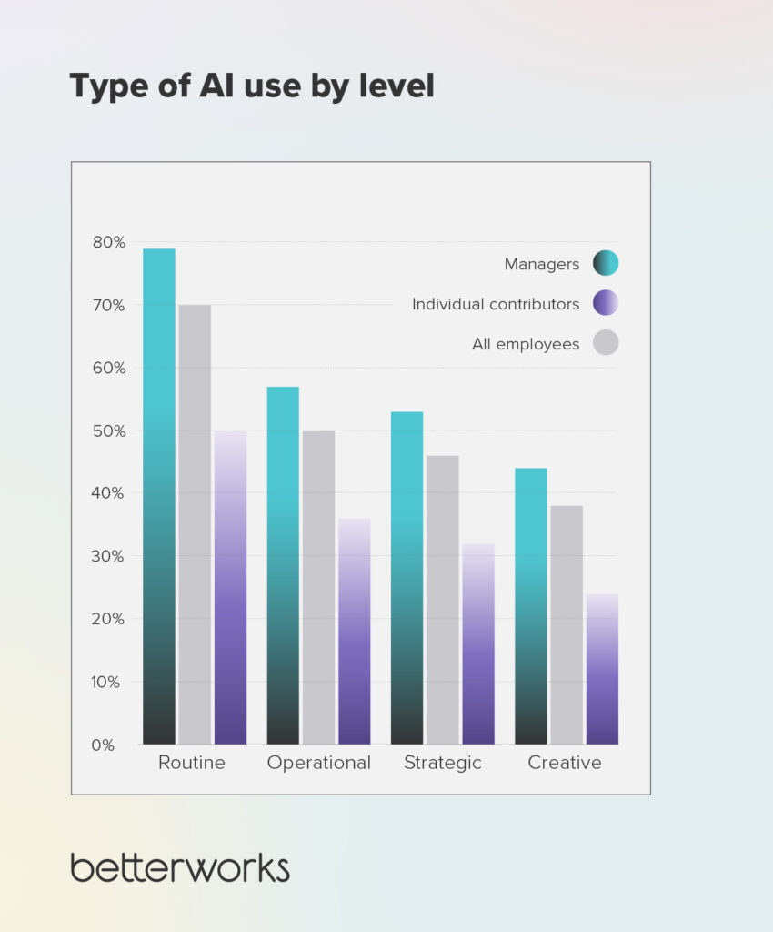 “Gaps are widening,” explains Cheryl Johnson, chief product and technology officer at Betterworks, “…between companies that still haven’t implemented AI tools and the early adopters who are forging ahead with experimentation and iterative learning.”