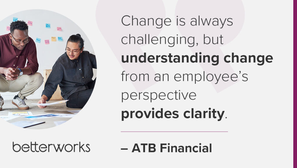 When rolling out Betterworks across ATB Financial, Jennifer and her team set a starting goal of simply getting people into the system. With that smaller goal accomplished, she can focus on the next priority. “We got that quantity in there, knowing that that next step is now the quality,” she said. This approach helps employees adapt to the change without feeling overwhelmed.