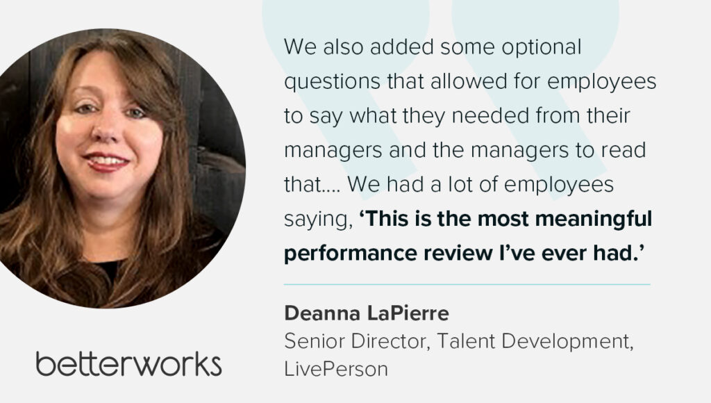 Regular and meaningful conversations between managers and employees are crucial for effective performance management. Deanna and her team at LivePerson have added another layer by intentionally encouraging straightforward feedback — not just from managers to employees, but also from employees to managers.