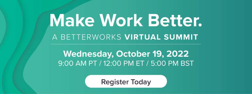 To learn more about how Betterworks is helping companies think anew about culture and improving workforce engagement and productivity, please join us for our Make Work Better Summit on October 19, 2022.