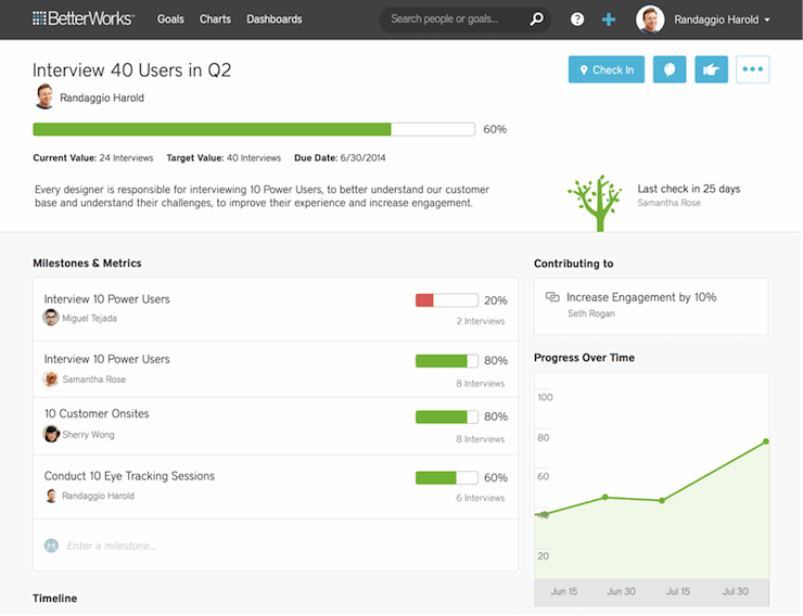Once your goal is defined, break them down to help you focus on specific deliverables. We call these smaller deliverables milestones. These discrete milestones help you form a plan of action for your goals. They are also your measures for success. When all is said and done, you can point to the milestones you completed as evidence of your accomplishments for the quarter.