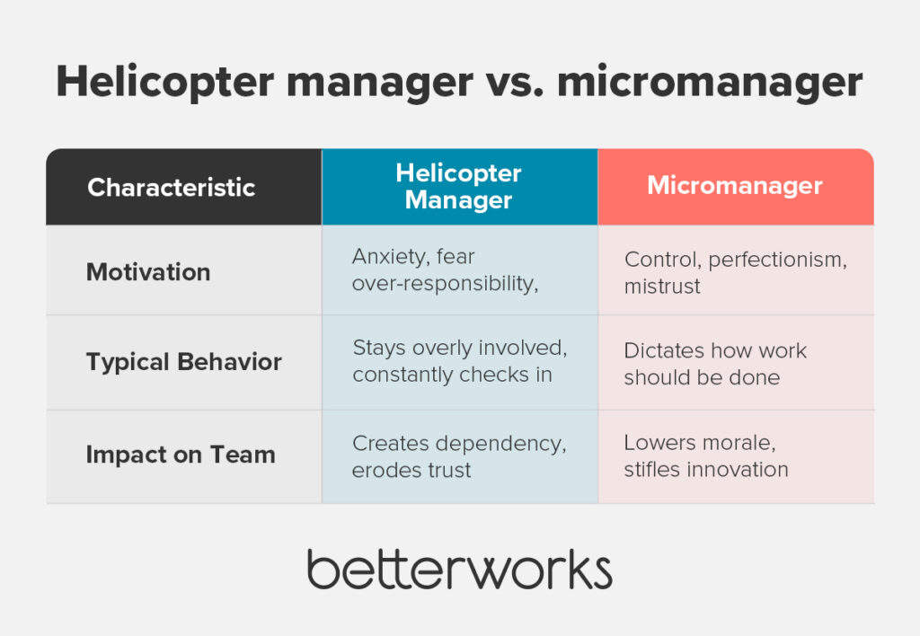 Unlike micromanagers, helicopter bosses are often driven by anxiety, not distrust. They want their teams to succeed, but their need to stay involved ends up undermining that very goal.