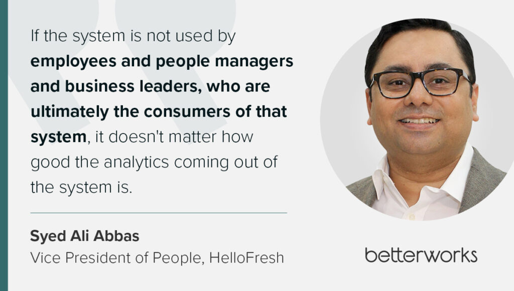 When HelloFresh selected Betterworks, the decision wasn’t based on features alone, he says. It was about confidence in adoption. Abbas was clear: If people don’t use the system, nothing else matters.