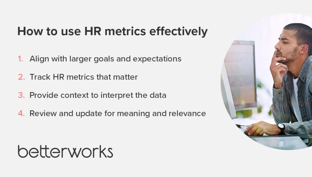 HR metrics help you determine whether changes to your HR programs or new initiatives are successful. By tracking metrics before and after a change is made, you can see whether the change had the desired effect — and whether unintended effects occurred.