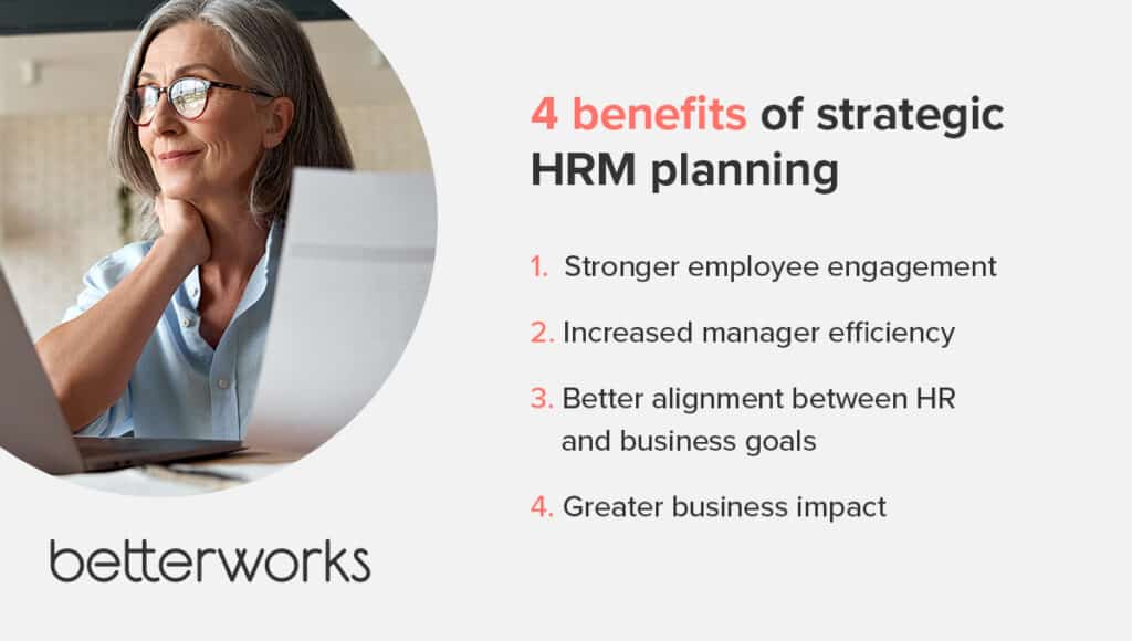 The importance of having a strategic HRM plan can’t be overstated. Proactive resource planning by HR leaders ensures that the business has the skills, abilities, and competencies needed to achieve strategic objectives.