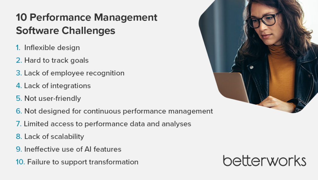 But selecting the right performance management software to drive strategic talent outcomes can be overwhelming. Learn about the most common performance management software challenges and discover how to choose the right tool for your organization.