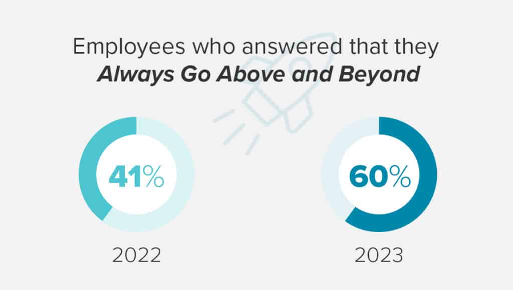 Employees feel they’ve persevered at work through the pandemic and are working hard at delivering on their side of the deal. In fact, they feel more efficient, productive, and engaged this year than last: 8% higher in efficiency and productivity and 19% higher in discretionary effort (always going above and beyond). Four of the top five sentiments expressed by employees in this year’s survey are positive — productive, confident, engaged, and optimistic — with “stress” landing in fifth place.