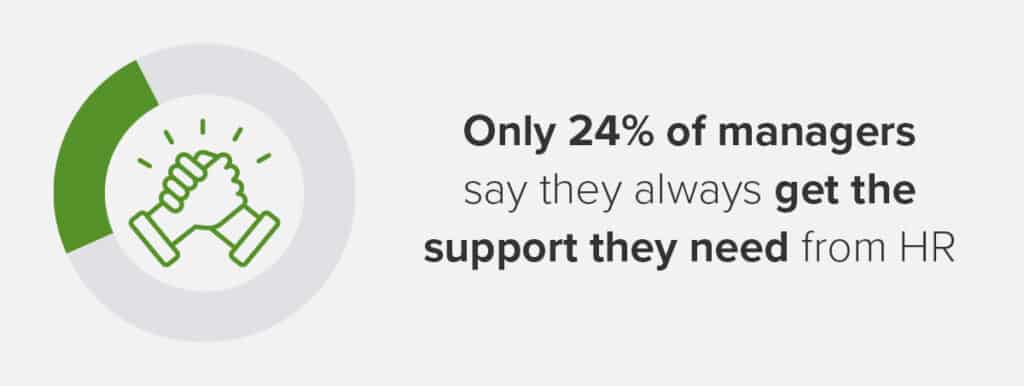 Managers tell us they want more resources and tools from HR to coach their employees. And the need for organizational support and resources is even more critical for less tenured managers, whose employees tend to be less satisfied than employees working for experienced managers. According to our survey, managers want more guidance coaching for performance, help with reviews, assessments, and ratings, and assistance with helping employees develop skills and careers.