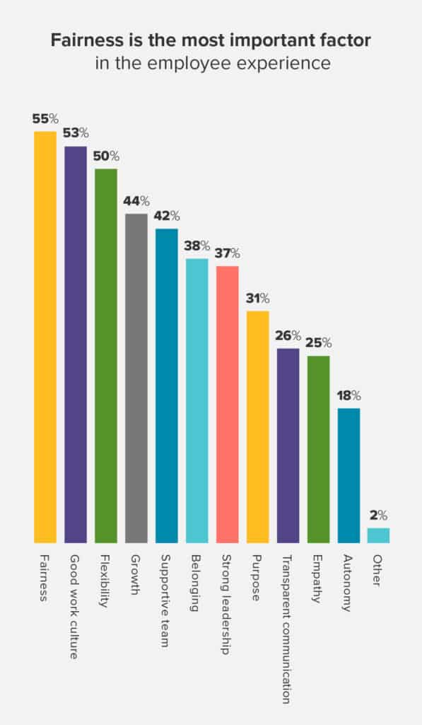 The right performance management approach helps you manage trust continuously by positively affecting numerous facets of the employee experience — from fairness (ranked by employees as No. 1 to their work experience) and sense of belonging to good work culture, career growth, and more.