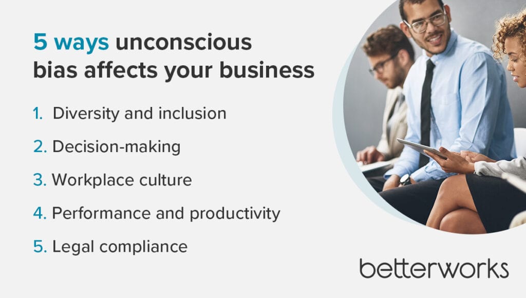 Although unconscious bias isn’t intentional, acting on our biases can still have severe consequences for the workforce and the business. Here are some ways unconscious bias can show up in your organization.