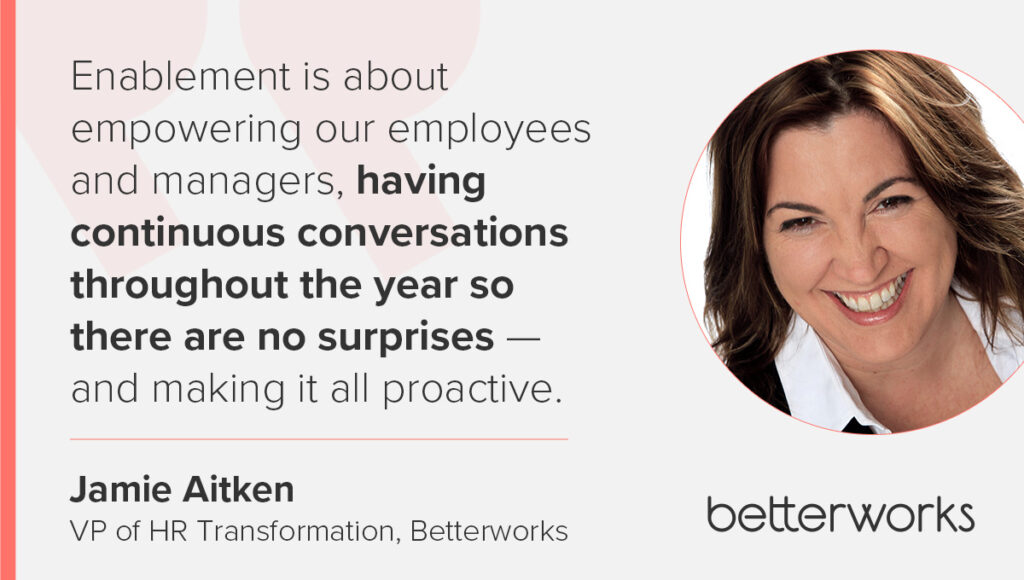 “For employees, it’s about moving from this mindset of ‘this is something my boss does to me’ to ‘this is something I am an active participant in,’” Jamie explained.